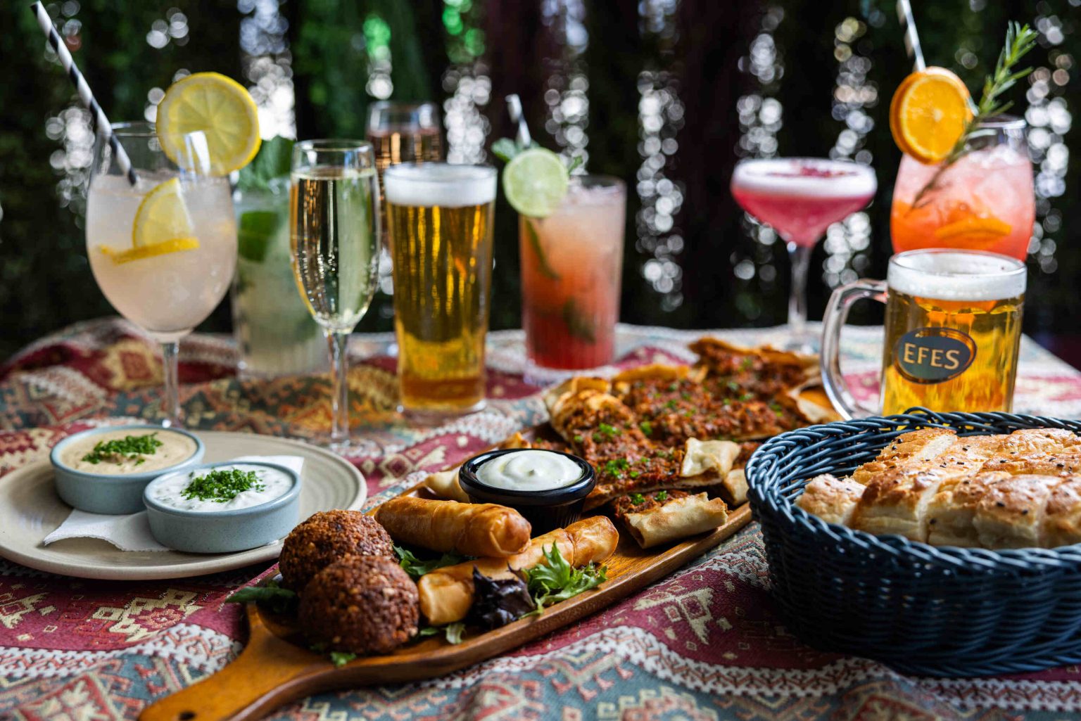 Enjoy Turkish delights like cheese bread, falafel, and kofta alongside handcrafted cocktails, from a Lychee Mojito to the signature Downtown Espresso Martini.